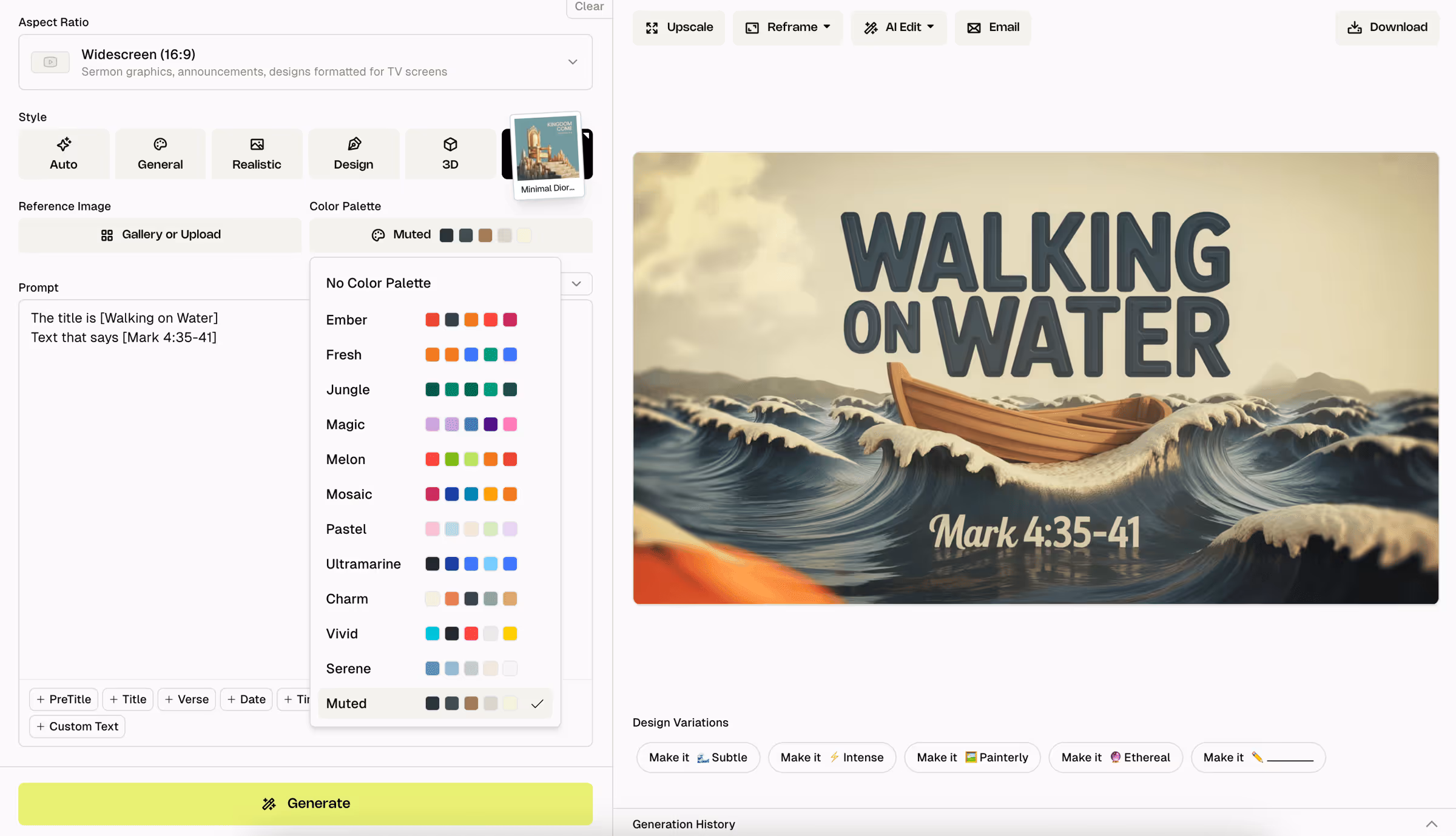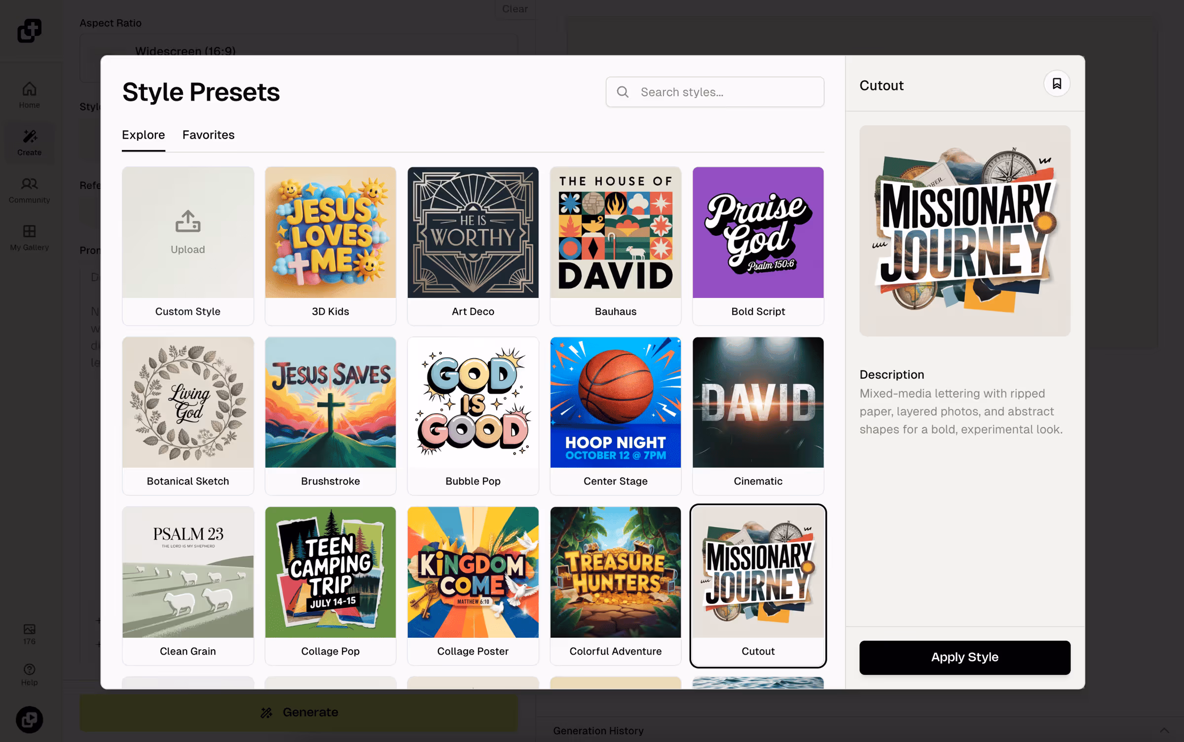 Now, you can choose from a library of established styles to instantly transform the look and feel of your church graphics. Go modern, bold, classic, or creative — all in one click.